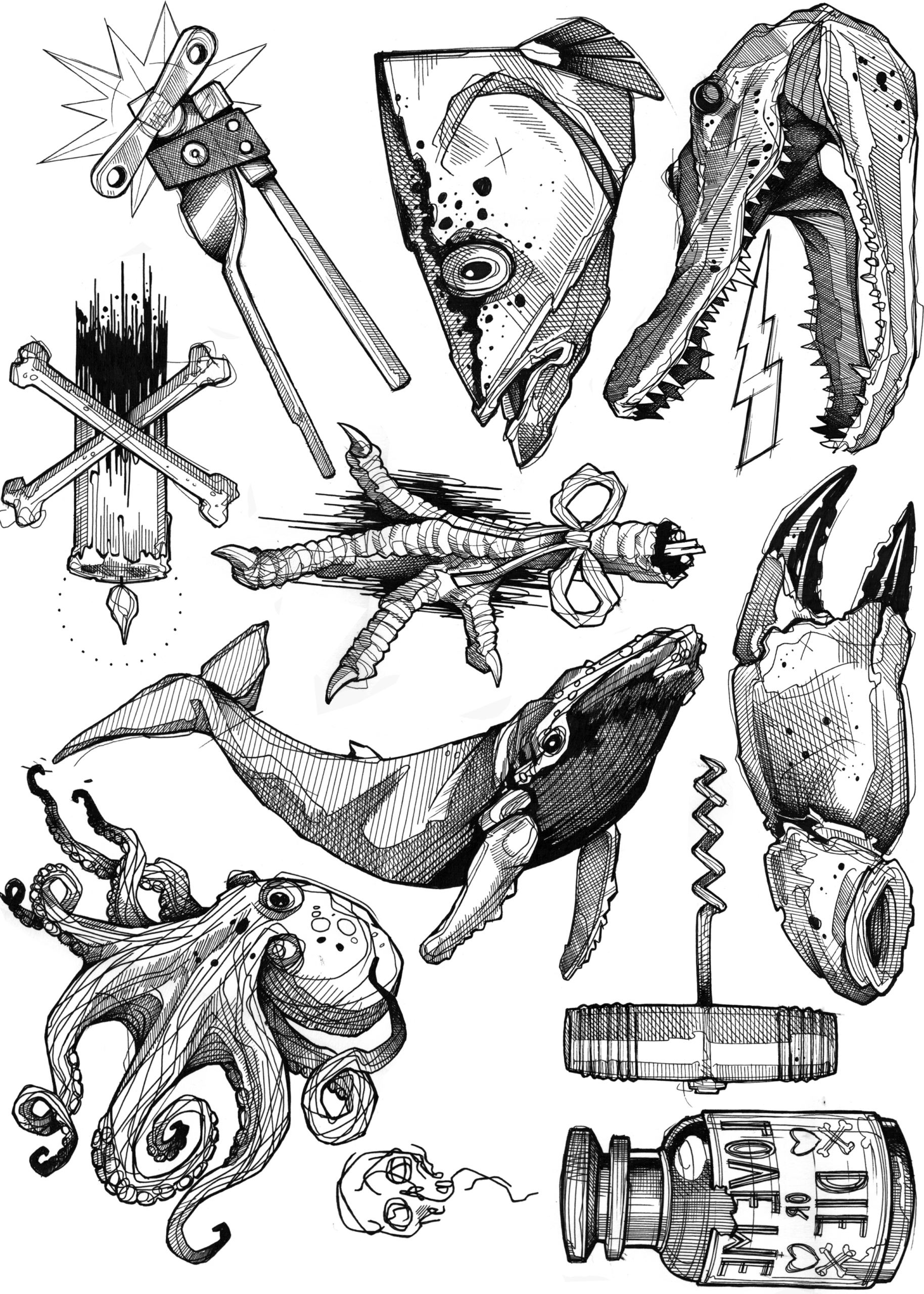 Tous les dessins présentés ici sont issus de carnets de croquis et sont tous disponibles pour le tatouage.